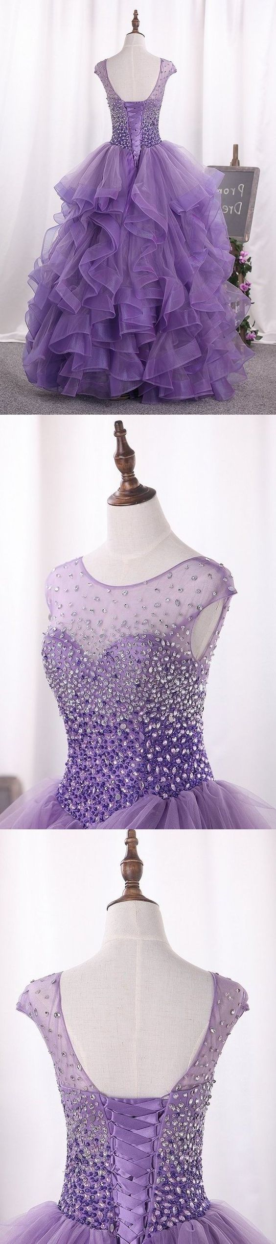 2020 Ball Gown Scoop Beaded Bodice Tulle Quinceanera Dresses Prom Dress cg10329