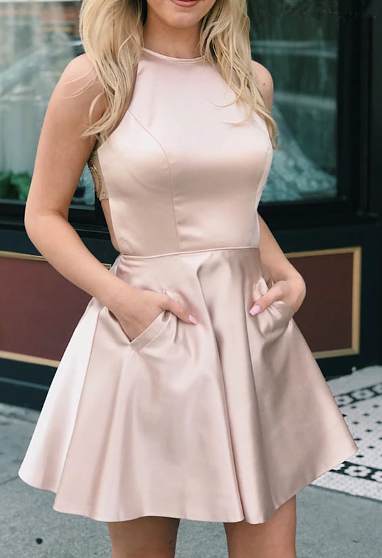 A-line Navy Blue Short Homecoming Dress with Beaded Back cg2935