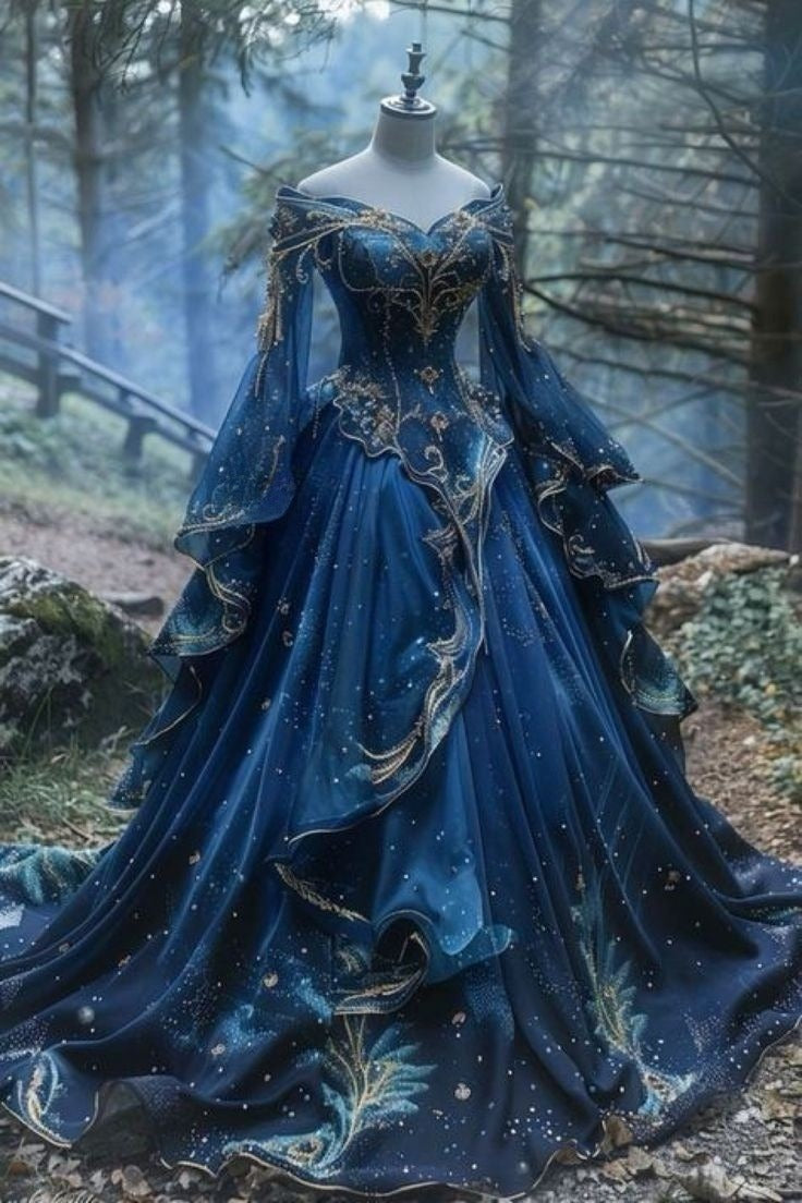 A Line Princess Tulle Off Shoulder Long Prom Dress, Vintage Evening Dress cg25412