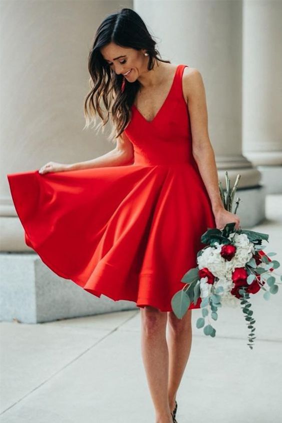 A-Line V-Neck Sleeveless Short Yellow Satin Homecoming Dress cg2007