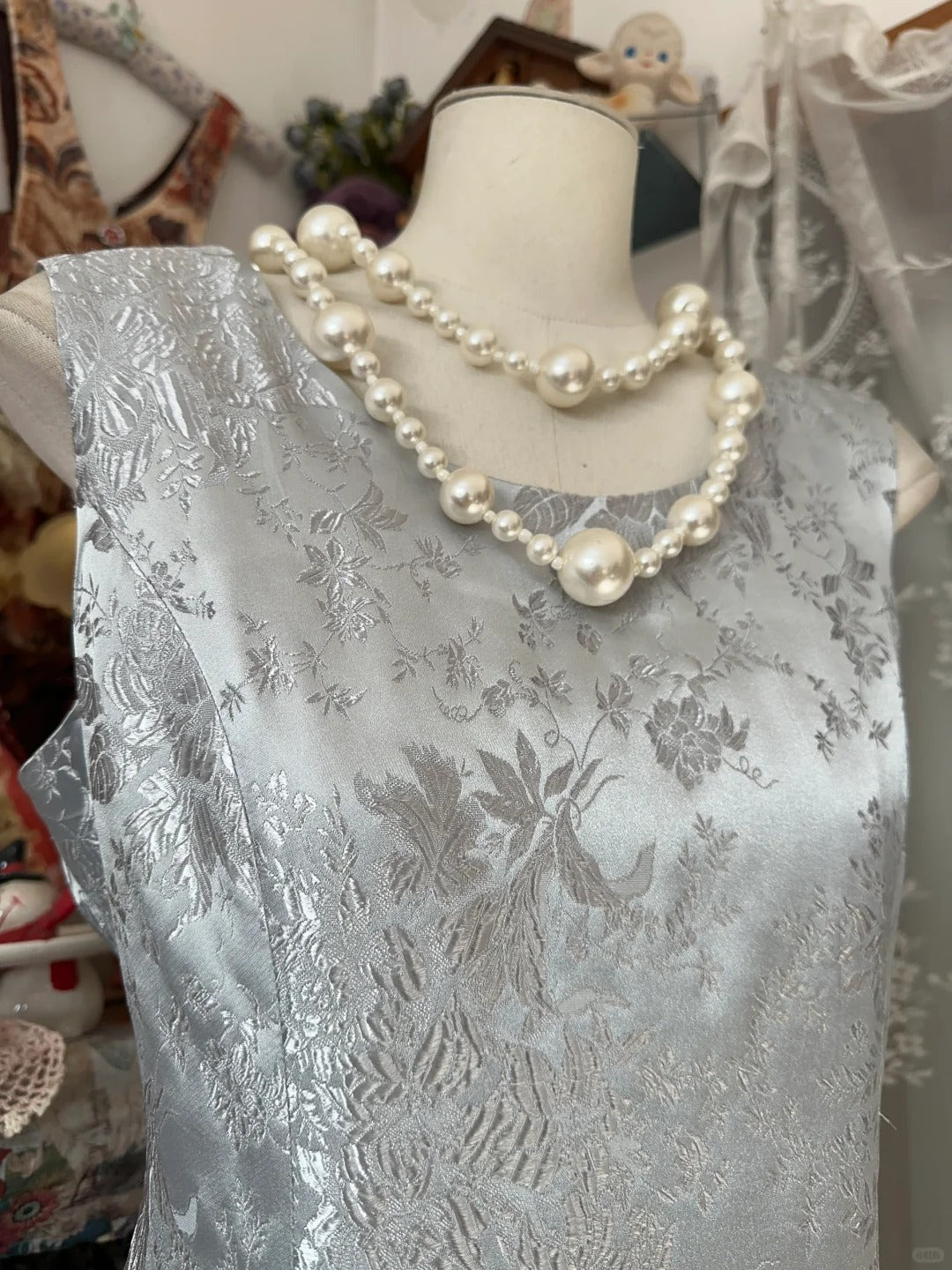 A Line Vintage Silver Long Prom Party Gown Evening Dresses cg25347