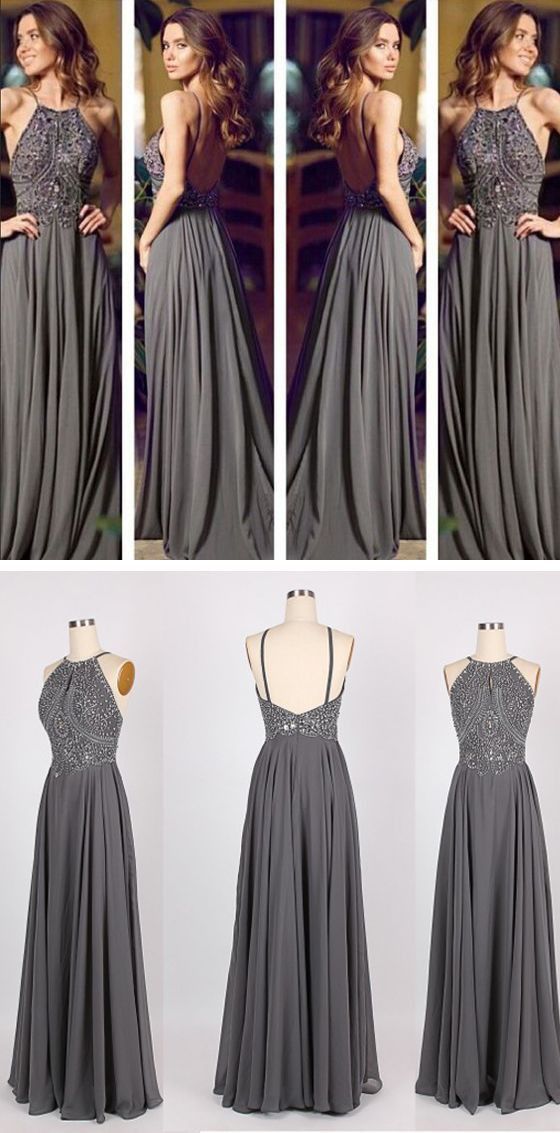 ackless A-line Beaded Chiffon Long Prom Dress Fashion Wedding Party Dress cg674