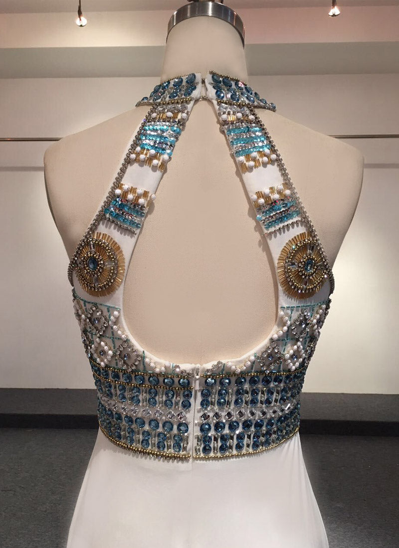 Backless Party Dresses,Sheath High Neck Vintage Evening Gown,Top Sequined Beaded Crystal Princess Prom Dress,Two Straps Long Formal Pageant Dresses cg22246