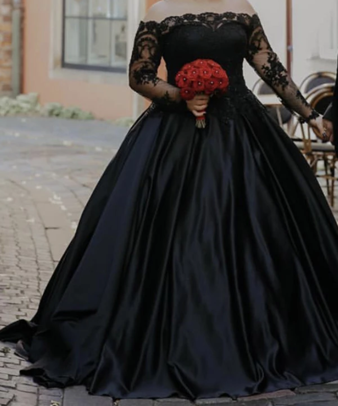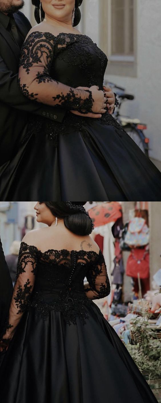 Black Wedding Dress Plus Size Ball Gown Lace Long Sleeves prom dress cg5042