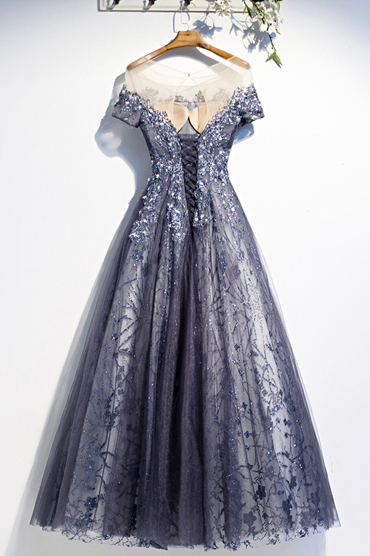 BLUE TULLE SEQUINS LONG PROM DRESS A LINE EVENING DRESS cg17906