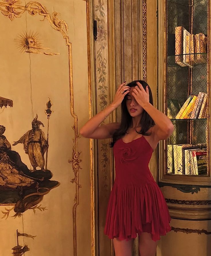 Burgundy Elegant Short Prom Dresses Spaghetti Straps Flowers Pleated Formal Dress Evening Dress cg25875