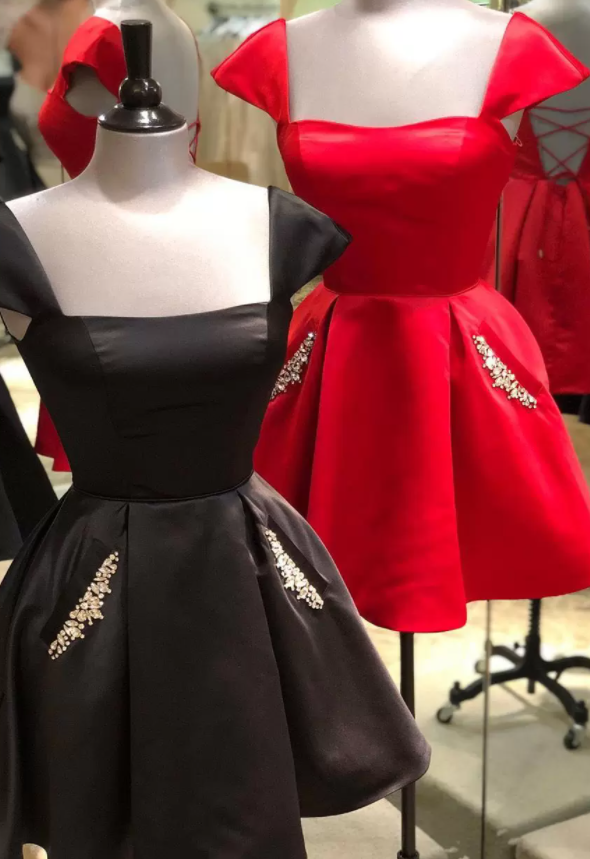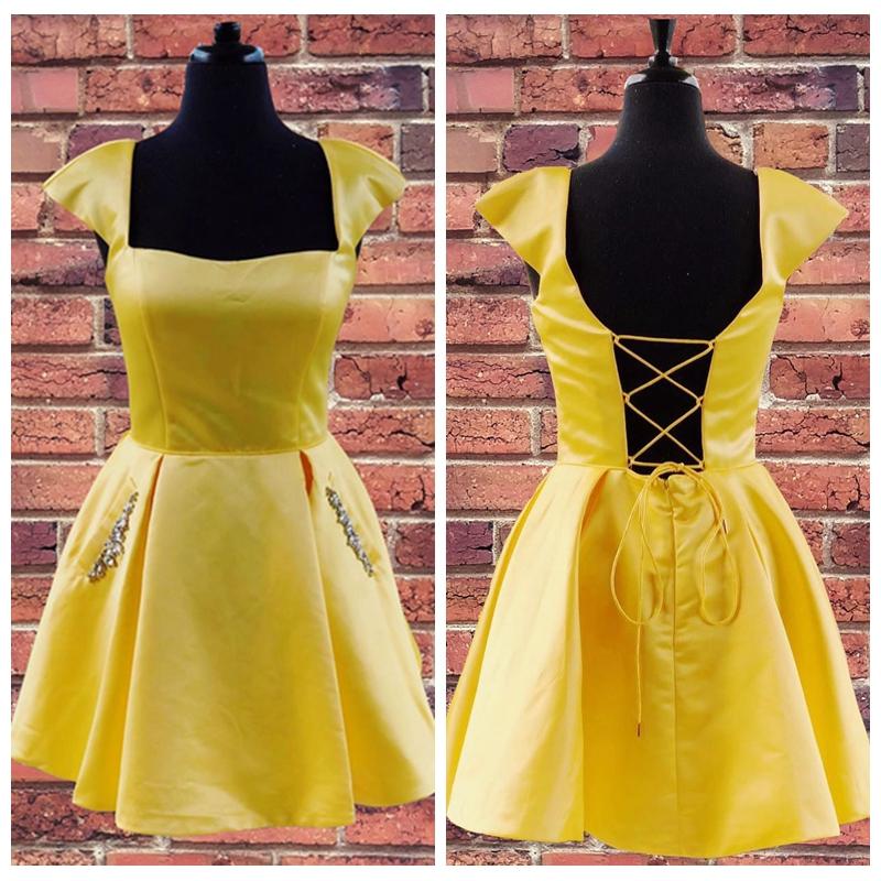 cap sleeves light sky blue satin short homecoming dress with beaded bodice cg24733