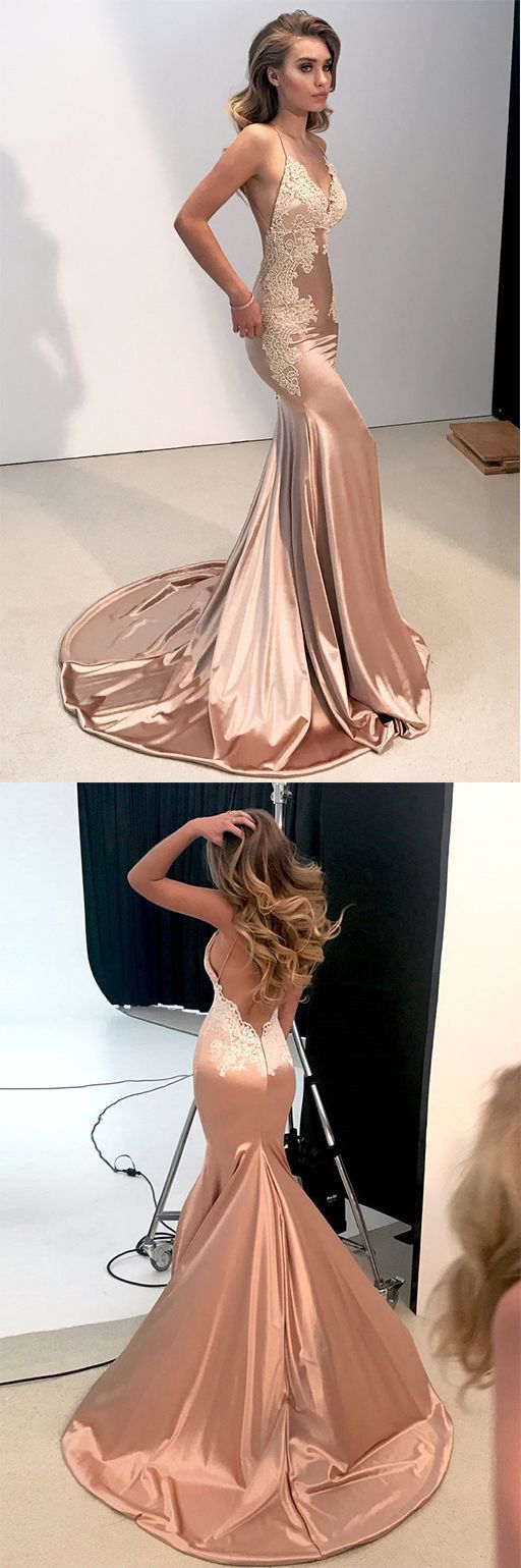 Charming deep V-neck lace Spaghetti Strap backless Trumpet long prom dresses cg633