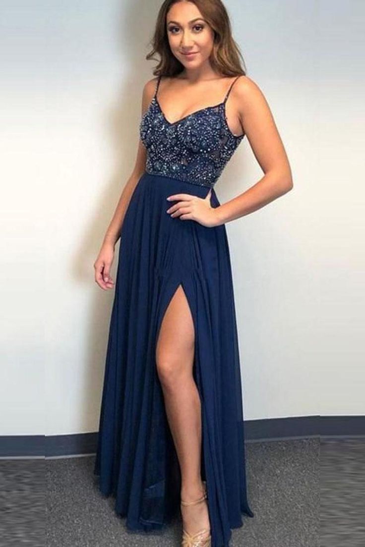Charming Spaghetti Straps Evening Party Dress, Sexy Prom Dresses with Slit cg603