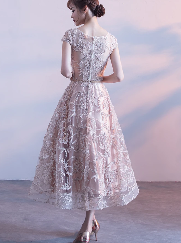 Cute Cap Sleeves Lace Tea Length Bridesmaid Dress Homecoming Dress cg13535