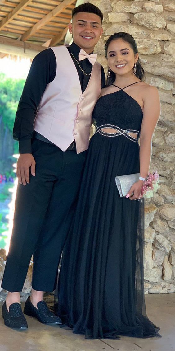 Excellent Lace & Tulle Halter Neckline A-line Evening prom Dresses With Beadings cg10602