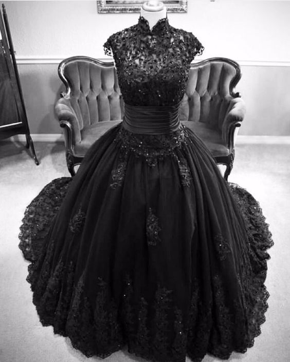 Halter Black Prom Dress Cap Sleeve Applique Long Ball Gown cg15859