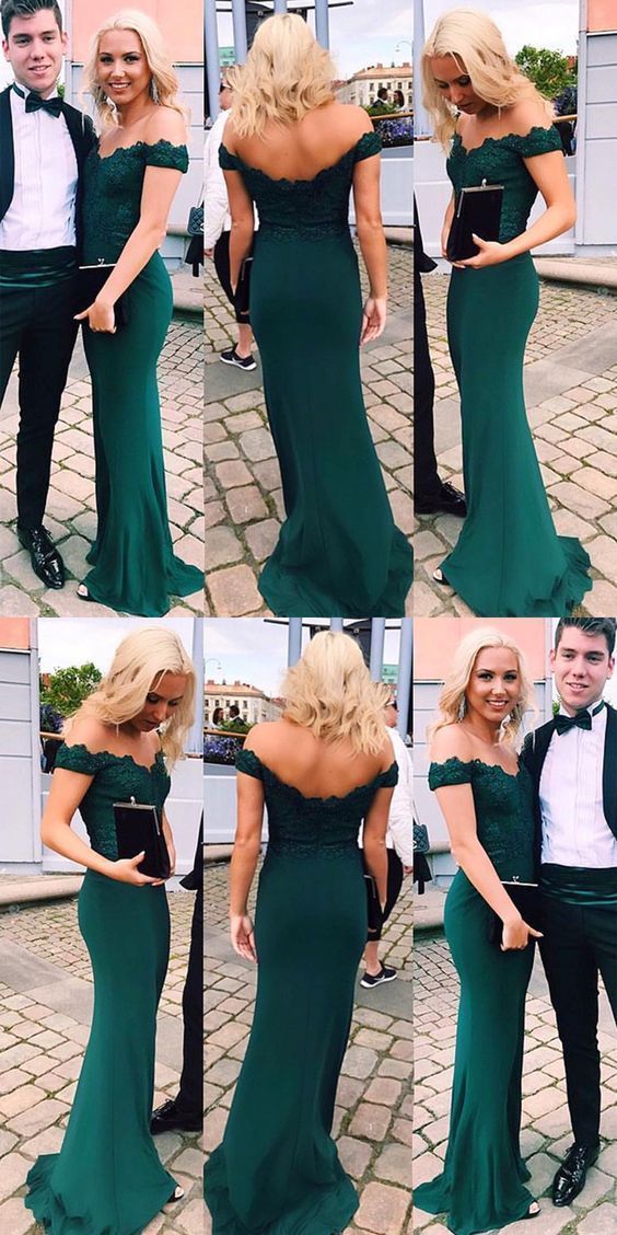 Long Emerald Green Evening Dress, Sexy Woman Prom Party Dresses, Lace Formal Prom Dresses Off the Shoulder cg686