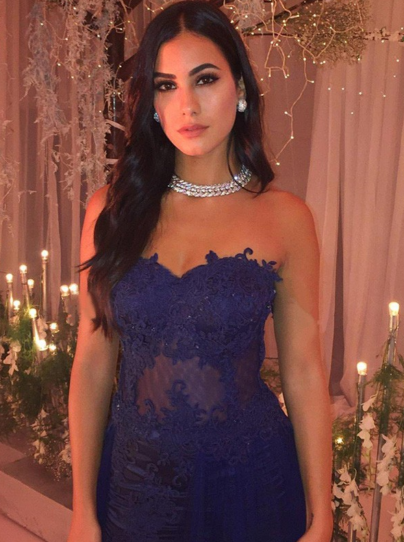 Mermaid Tulle Applique Strapless Sweep/Brush Train prom Dress cg10478