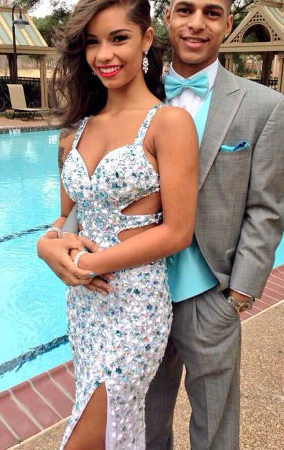 New Arrival Crystal Mermaid Backless White Front Split Long Prom Dress cg4524