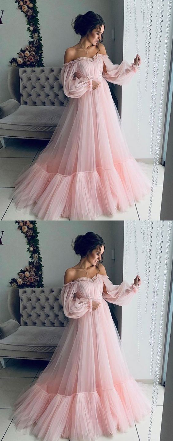 blue/pink tulle long prom dress, pink tulle evening dress cg489