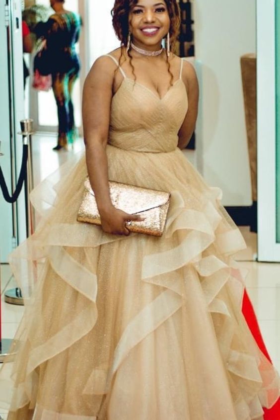 princess shimmering gold A-line tiered long prom dress year 12 formal dress cg16555