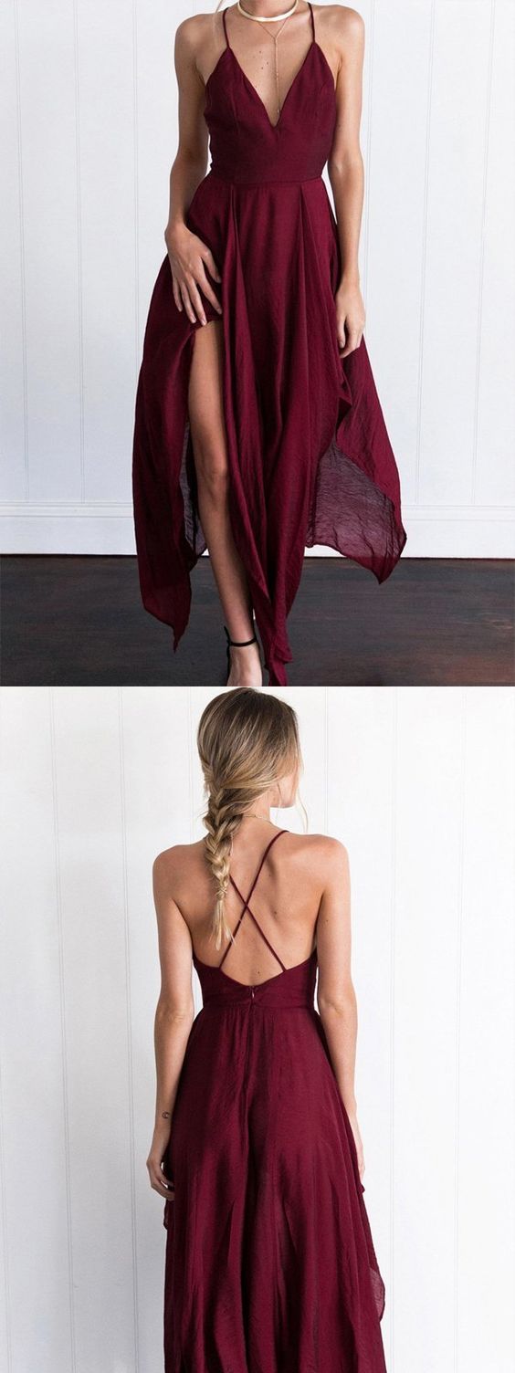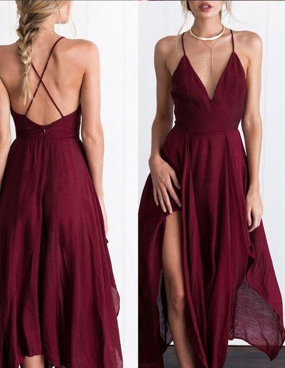 Sexy Dark Red Chiffon V-neck Dresses ,Cheap Spaghetti Straps Short Prom Dresses cg498