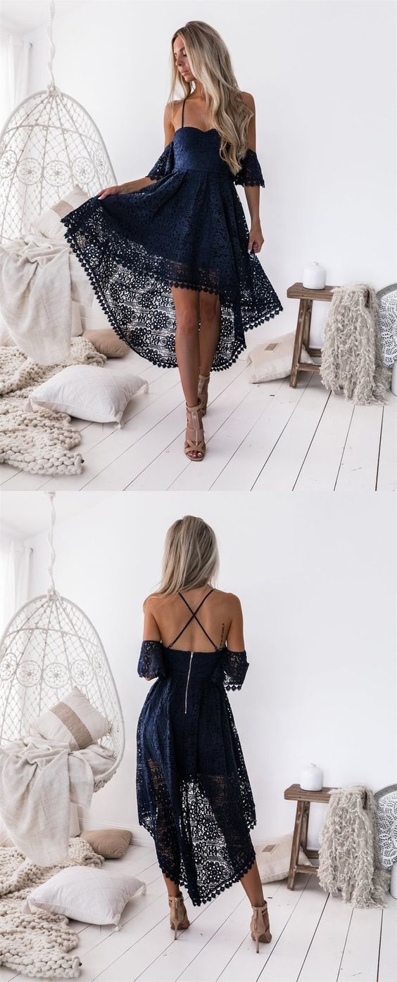 Sheath High Neck Sleeveless Navy Blue Knee-Length Lace Homecoming/Party Dress cg781