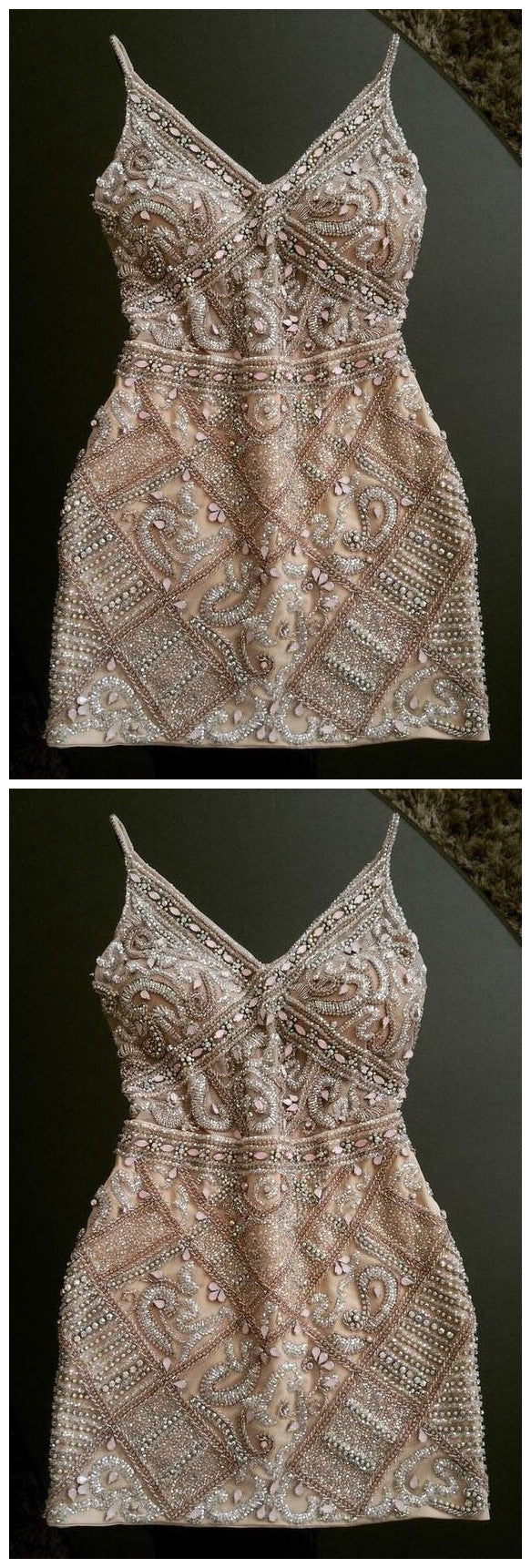Sheath Spaghetti Straps Beading Homecoming Dresses,Short Cocktail Dress cg828