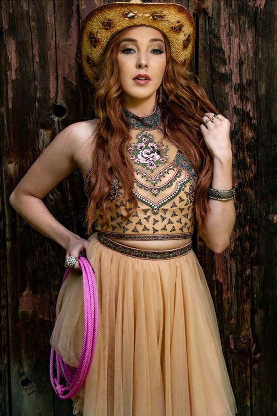 Simple Black Two Piece Halter Above-Knee Embroidery Backless Homecoming Dress cg4019