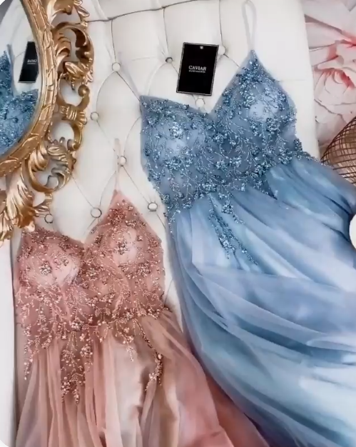 straps A-line tulle long prom dresses formal evening dresses cg12800