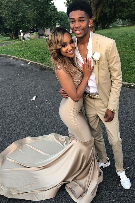 Two Pieces V-Neck Straps Sleeveless Lace Appliques Sexy Mermaid Floor-Length Prom Dresses cg8465