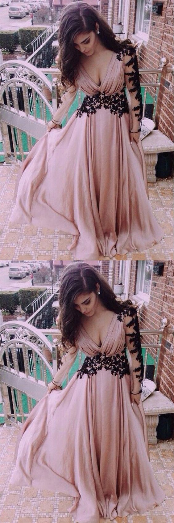 V-Neck Long Sleeve Lace Prom Dresses Evening Dresses cg700