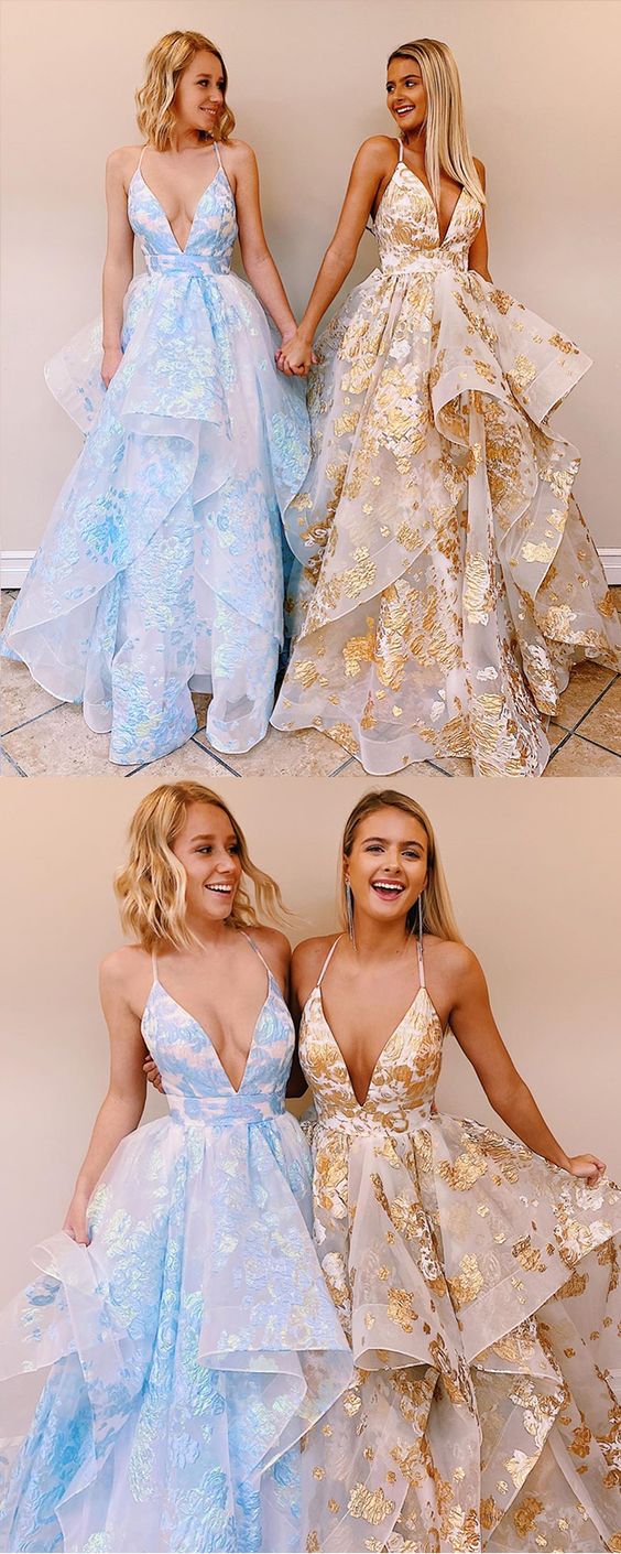 V-neck Metallic Ruffled Tulle Prom Dress cg7607